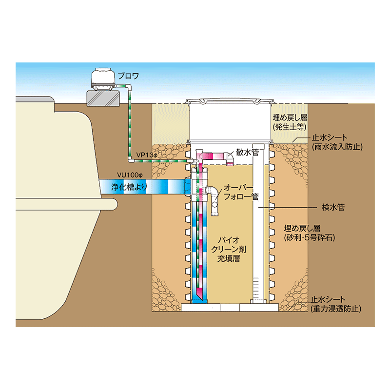 ブロワ配管(VP13φ)接続 |