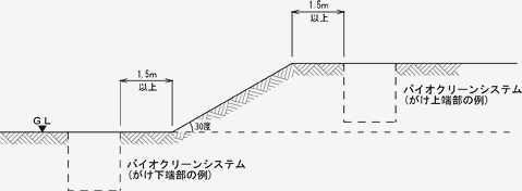 ④ 崖面近くに設置する場合は下図を参考にして下さい。