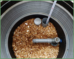 このシステムは富士山頂のトイレに使用されている設備と同様の方法で、土壌にいる微生物を利用し、排泄物である有機物を醗酵分解し最終的に水と炭酸ガスにします。