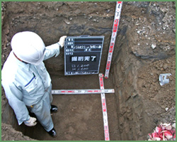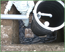 掘削した壁面や底面の状態を良く確認して下さい。 土質が粘土質の時や湧水がある場合は、後の浸透不良の原因になりますので注意が必要です。 そのまま埋設せず、まずは施工管理者にご相談下さい。 |