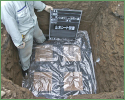 標準仕様の場合は、止水シートから仕上がり面までは発生土での埋め戻しも可能です。 |